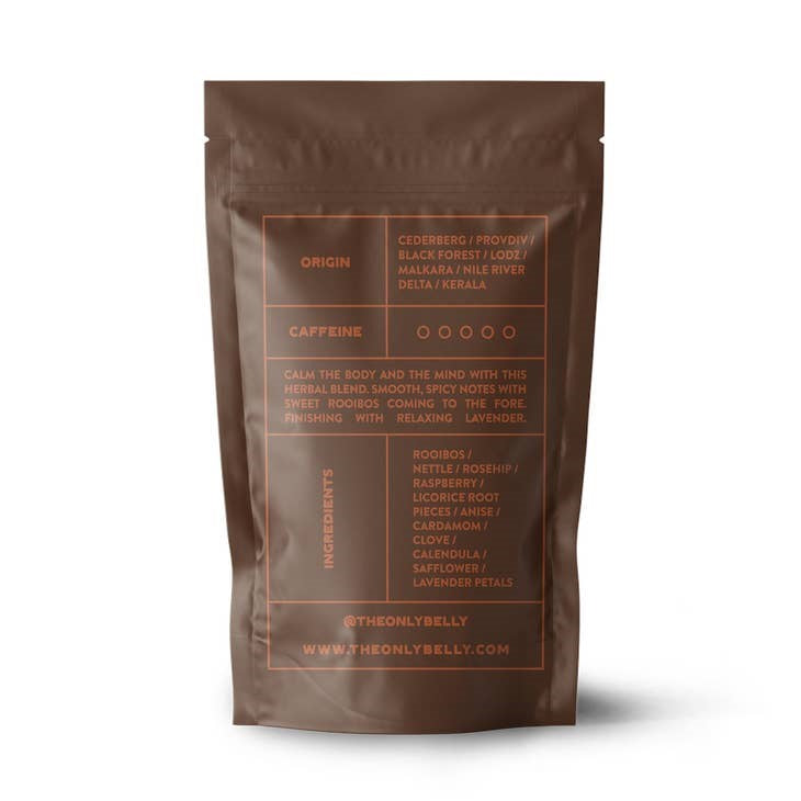 Calm the body and the mind with this ethically sourced, loose leaf craft tea from Belly. Smooth, spicy notes with sweet rooibos coming to the fore, finishing with relaxing lavender.