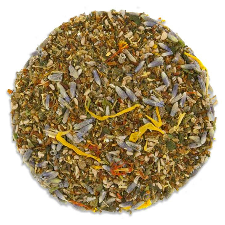 Rooibos / Nettle / Rosehip / Raspberry / Licorice root pieces / Anise / Cardamom / Clove / Calendula / Safflower / Lavender petals