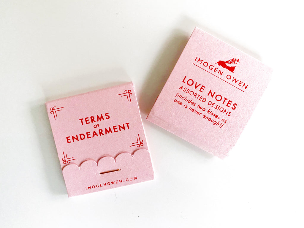 Terms of Endearment - a pocket matchbook, with 6 perforated tear-out tiny notes of a flirtatious nature, perfect for telling someone how you feel!